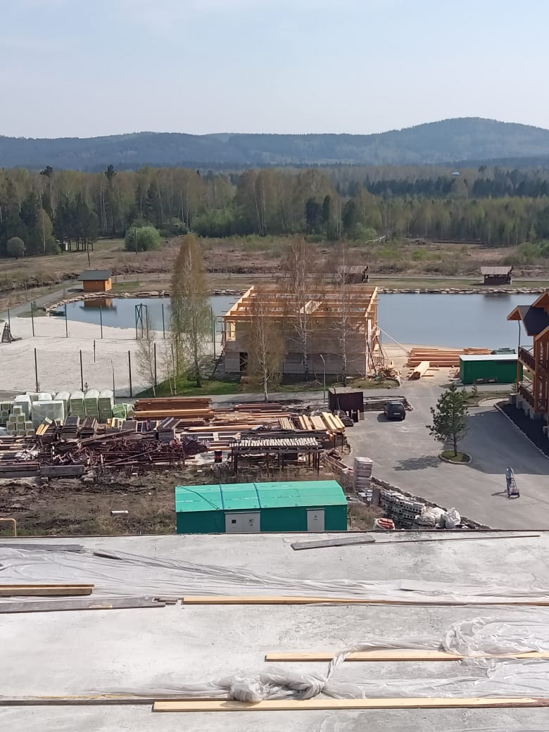 Начались работы по благоустройству прилегающей территории. Напротив здания, на пляже, полным ходом идет строительство нового кафе. Уже готов силовой каркас помещения. Идет утепление наружных стен, ведется подготовка к кровельным работам. В ближайшее время планируется начать электромонтажные и сантехнические работы.