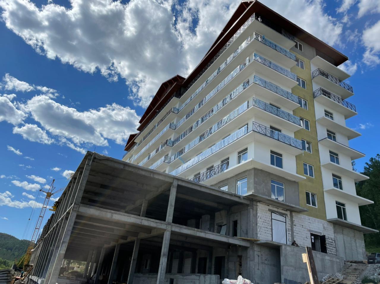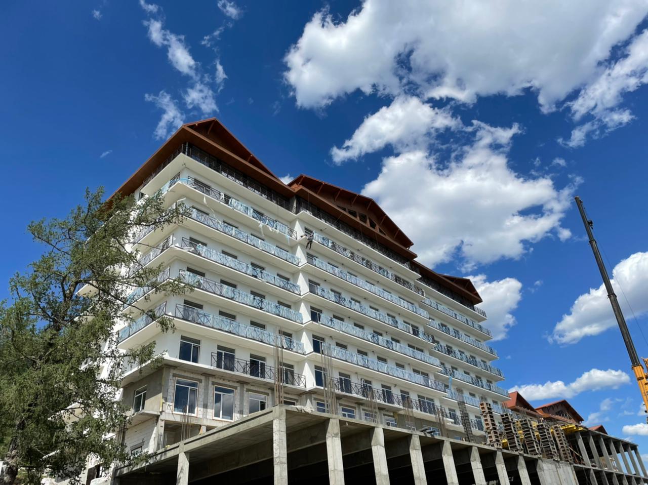 Продолжаются бетонные работы по возведению будущих помещений конференц-центра и ресторана. Также близятся к завершению фасадные отделочные работы.