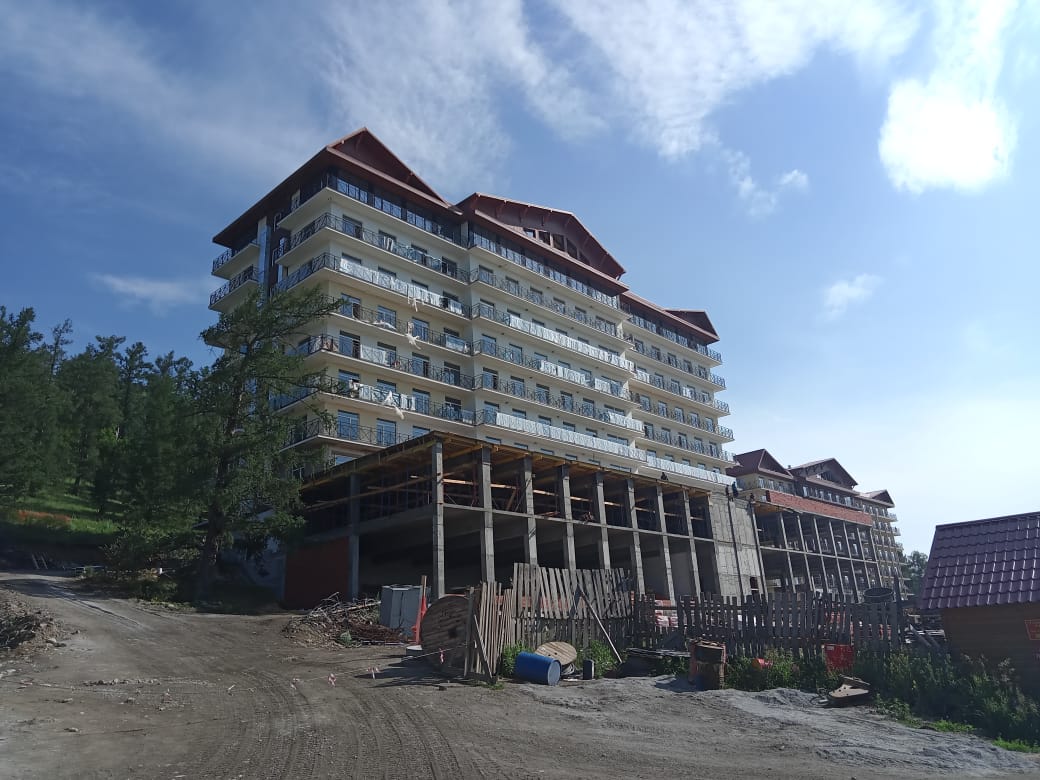 Продолжается внутренняя отделка номеров. Ведутся работы по устройству плитки на балконах. В части номеров уже окрашены стены, смонтированы натяжные потолки, установлены межкомнатные двери, уложено ковровое покрытие и керамогранит, началась установка мебели.